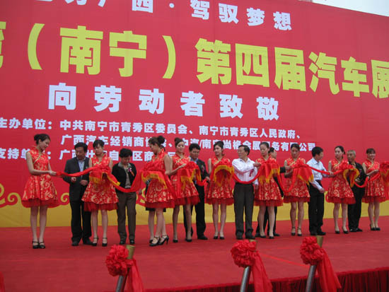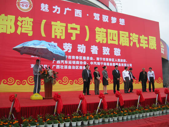 向勞動(dòng)者致敬!2010年4月29日,北部灣(南寧)第四屆汽車展將在南寧國(guó)際會(huì)展中心室外廣場(chǎng)盛大開幕,車展為期4天,到5月2日止.此次活動(dòng)由中共南寧市青秀區(qū)委員會(huì)、南寧市青秀區(qū)人民政府、廣西汽車經(jīng)銷商協(xié)會(huì)和中汽/南寧尚格會(huì)展服務(wù)有限公司聯(lián)合主辦,廣西壯族自治區(qū)商務(wù)廳支持舉辦。此次車展攜手眾多國(guó)際、民族優(yōu)質(zhì)品牌向勞動(dòng)者獻(xiàn)上大型汽車盛宴:名車匯粹,現(xiàn)車集結(jié),新車上市,敬獻(xiàn)年度優(yōu)惠,清涼空調(diào)抽獎(jiǎng),捐助希望工程,舉行攝影比賽,十佳勞模評(píng)選,活動(dòng)繽紛實(shí)惠,讓勞動(dòng)者盡享優(yōu)質(zhì)汽車生活!