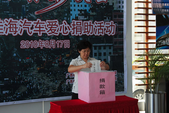 2010年8月17日15:00在廣西桂海汽車(chē)別克展廳活動(dòng)“廣西桂海情系舟曲災(zāi)區(qū)”募捐活動(dòng),董事長(zhǎng)黃凡,總經(jīng)理王勇,副總經(jīng)理吳總、曾總親臨時(shí)現(xiàn)場(chǎng)。