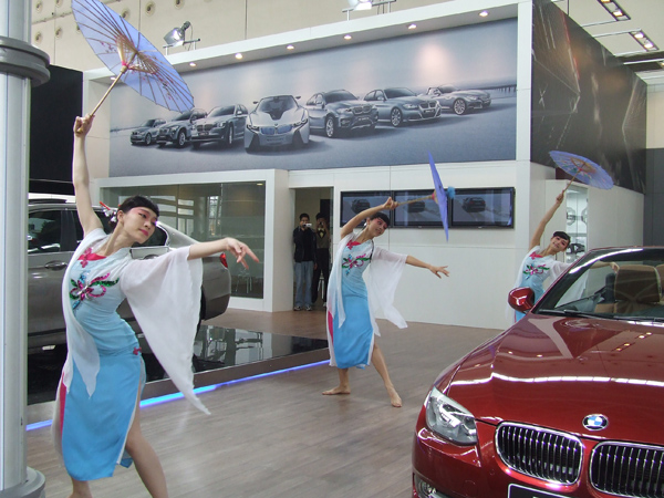 在喧囂的車展中,一曲江南水鄉(xiāng)安靜如小橋流水人家的舞蹈,也成功的吸引了許多人的腳步,舞蹈優(yōu)美,音樂猶如安靜雨聲,讓人忘記了是否還在車展中。