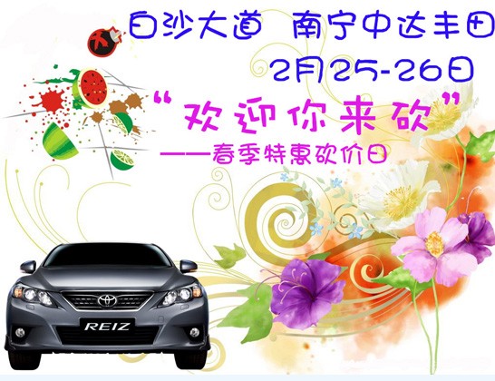 春光無限好,看誰刀法好。。2月25-26日(周六、周日),白沙大道南寧中達豐田“歡迎你來砍”春季特惠砍價日傾情呈現(xiàn),到店即可參加“真人切水果”體感游戲贏取購車優(yōu)惠,您能砍多少我們就優(yōu)惠您多少!
