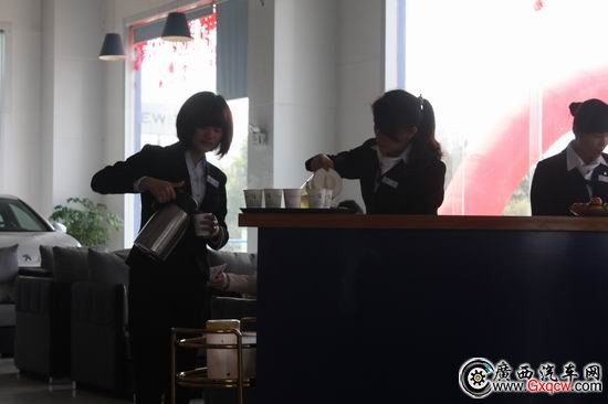 銷售顧問為網(wǎng)友準(zhǔn)備熱騰騰的茶