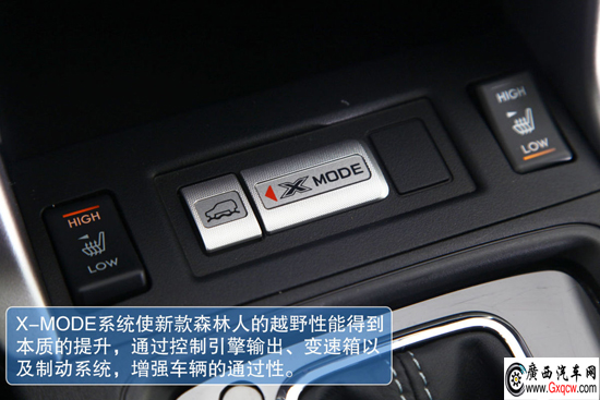 新款森林人增加了一個X-MODE按鍵。啟動該功能后,發(fā)動機(jī)的扭矩輸出將會受到一定限制,此時陡坡緩降功能也會自動開啟,同時電子限滑差速器LSD的靈敏度也會得到提升。因此可有效提升在交叉軸狀態(tài)前后不同側(cè)車輪同時打滑的脫困能力,并且判斷車輪打滑的反應(yīng)時間非常短,這無疑將新森林人的越野能力提升到了一個新的高度。