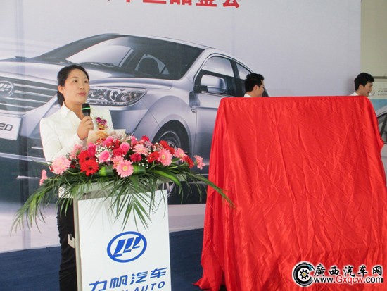 開(kāi)天力帆4S店銷售經(jīng)理古女士與廠家領(lǐng)導(dǎo)一同為720揭幕