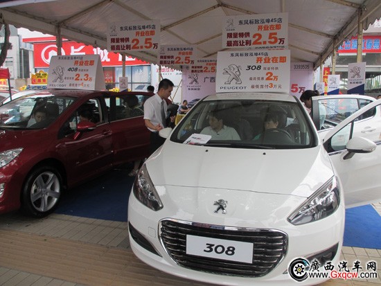 車交會進入了第二天,編輯走訪了解到,展位位于福安居對面的東風標致南寧弘埠4S分別展出308、408、508多款東風標致車型,最高讓利均在2萬元以上,這讓小編非常的驚訝。