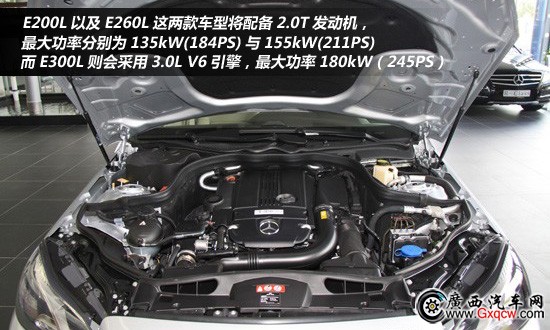 入門級的E200車型配置了2.0升四缸低增壓渦輪增壓發(fā)動機(jī),最大功率132kW(181Ps),而E260則配置了2.0升四缸高增壓發(fā)動機(jī),最大功率提升至152kW(208Ps);而3.5L發(fā)動機(jī)將取代3.0L機(jī)型,為E300和E350車型提供動力,前者是低功率版的252Ps和340Nm扭矩,后者是高功率版的306Ps和370Nm扭矩。此外還有3.0T的V6發(fā)動機(jī)和4.7T的V8發(fā)動機(jī)分別為E400和E500車型提供動力。