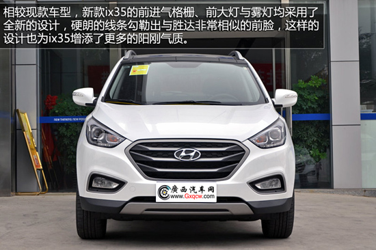 新款ix35外觀造型保留了現(xiàn)款的風格,只是在局部造型上進行了改動,融入新的家族元素,讓ix35儼然變成一臺小版勝達。而外觀方面的變化主要體現(xiàn)在前格柵、前后大燈、前霧燈及輪轂等。