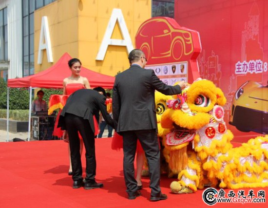 南寧華南城總經(jīng)理王培武與汽車超市總經(jīng)理彭仁杰醒獅點(diǎn)睛