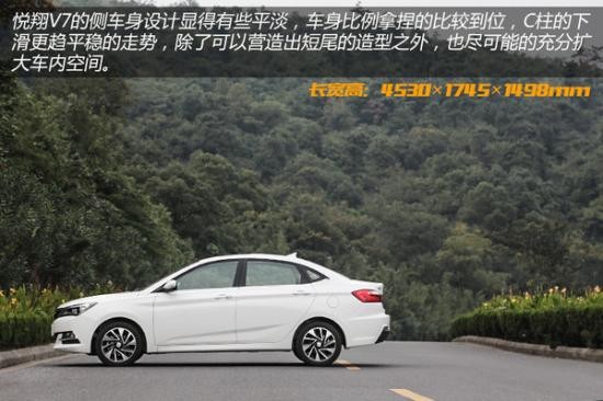 悅翔V7的側(cè)車(chē)身設(shè)計(jì)顯得有些平淡,車(chē)身比例拿捏的比較到位,C柱的下滑更趨平穩(wěn)的走勢(shì),除了可以營(yíng)造出短尾的造型之外,也盡可能的充分?jǐn)U大車(chē)內(nèi)空間。車(chē)身尺寸從數(shù)據(jù)上不難看出相比同級(jí)車(chē)型并不占優(yōu),不過(guò)這也造就了它精致而緊湊的外形。