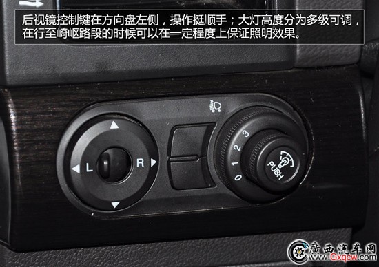 駕駛員側(cè)車窗帶有一鍵升降,后排車窗可通過駕駛員車門上的按鍵鎖止升降功能;在車窗控制區(qū)前方是中控鎖的按鍵。后視鏡控制鍵在方向盤左側(cè),操作挺順手;大燈高度分為多級可調(diào),在行至崎嶇路段的時(shí)候可以在一定程度上保證照明效果。