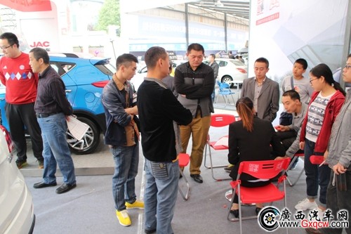 交車儀式結(jié)束后,新車主們跟隨銷售人員回到展位辦理手續(xù),很多觀眾好像意猶未盡,竟尾隨著新車主來到展位,讓江淮汽車展位一時(shí)顯得十分熱鬧。