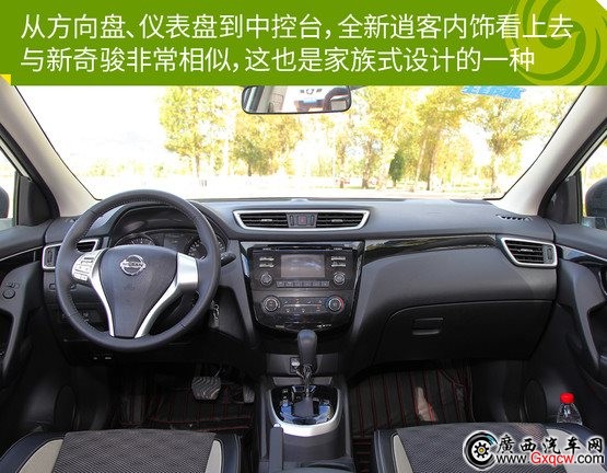 從方向盤、儀表盤到中控臺,全新逍客內(nèi)飾看上去和用起來都與新奇駿非常相似,這也是家族式設(shè)計的一種。內(nèi)飾的質(zhì)感相比上一代車型有很大進步,用到了很多軟性材質(zhì),這是中國消費者很喜歡的。當(dāng)然,深色內(nèi)飾有一個問題就是,光亮的中控臺面板有點兒灰塵就很容易顯臟。