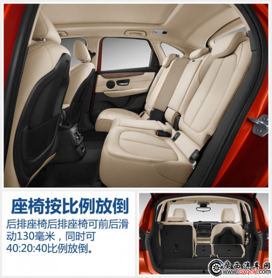 內(nèi)飾方面,創(chuàng)新寶馬2系旅行車同樣繼續(xù)沿用了海外版的設(shè)計(jì),層次分明的中控臺(tái)搭配8.8英寸中央顯示屏更顯車內(nèi)質(zhì)感,并搭載iDrive控制旋鈕。后排座椅的設(shè)計(jì)是一大亮點(diǎn),可實(shí)現(xiàn)前后滑動(dòng)130毫米 ,座椅靠背三級(jí)可調(diào),滿足不同身高深刻的乘坐舒適感。另外,后排座椅可按40:20:40比例放倒,座椅放倒后,后備箱容積最大可達(dá)到1,510升。(網(wǎng)通社 2016年3月21日 北京報(bào)道)