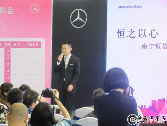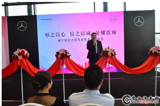 南寧恒信之星奔馳店總經(jīng)理黃勇致辭,作為南寧恒信奔馳的掌門人,黃總也肩負(fù)著偉大使命,作為南寧第三家奔馳店黃總也道出未來(lái)銷售的計(jì)劃,這讓南寧想購(gòu)買奔馳的客戶看到實(shí)惠。