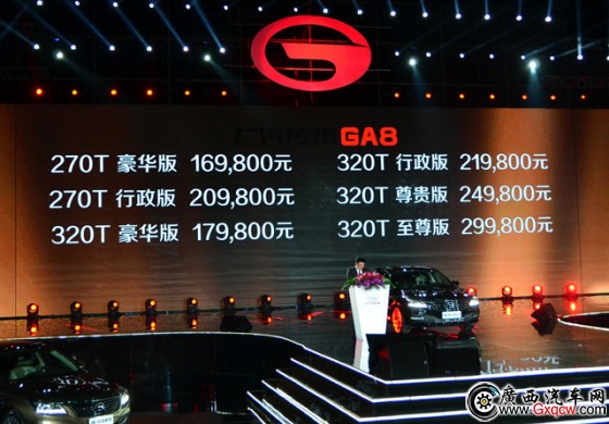 廣汽傳祺GA8正式上市 售價(jià)16.98萬~29.98萬元