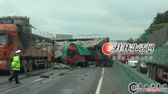 雨天車輪打滑掛車被“斬首” 事發(fā)桂柳高速(圖)