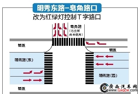 提起交通擁擠的明秀東路-園湖北路口,相信很多市民都很熟悉。根據(jù)南寧市規(guī)劃路網(wǎng),園湖北路延長線定名為皂角路,因此,此次改造將把明秀東路-園湖北路口更名為明秀東路-皂角路口。