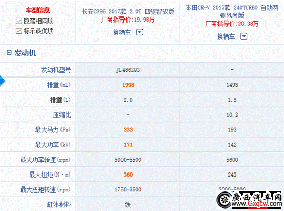 小結(jié):要論配置的豐富性,作為國(guó)產(chǎn)品牌的長(zhǎng)安確實(shí)更勝一籌,再加上CR-V風(fēng)尚版還要比CS95智馭版售價(jià)高4000元,優(yōu)勢(shì)一目了然。