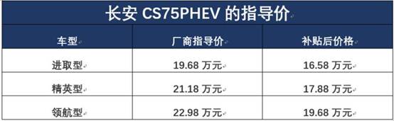如小編前面所羅列的配置,大家自然認(rèn)為這兩款車型價(jià)格相差無幾,其實(shí)不然,下圖為長安CS75 PHEV補(bǔ)貼后的全國售價(jià):