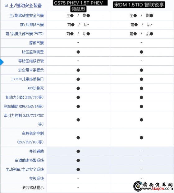 可以看到,這兩款車型都擁有豐富的配置,可以滿足基本駕駛需求,但是關(guān)注智慧安全駕駛的車主會發(fā)現(xiàn),像CS75 PHEV 1.5T PHEV領(lǐng)航型享有的并線輔助、車道偏離預(yù)警系統(tǒng)等主動安全裝置,宋DM 1.5TID 智聯(lián)銳享型是不具備的。在安全裝置方面,比亞迪宋MD配備稍顯簡陋。