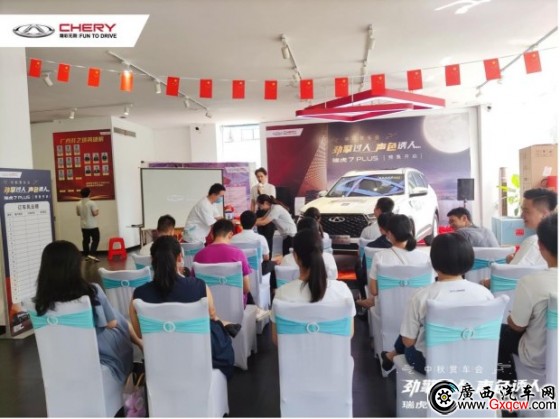 【廣西汽車(chē)網(wǎng) 南寧新聞】中秋送喜,瑞虎7PLUS相約。2021年9月19日,奇瑞廣西桂之瑞4S店于店內(nèi)舉行了瑞虎7PLUS中秋預(yù)售品鑒會(huì)。活動(dòng)現(xiàn)場(chǎng)貴賓滿座,凡進(jìn)店客戶均可領(lǐng)取佳節(jié)精美禮品,冷餐區(qū)還準(zhǔn)備了多款水果小吃供客戶享用。
