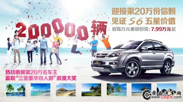 作為一款暢銷的高品價比SUV,S6不僅為消費者省了錢,其**同級的綜合產品力更為消費者帶來了愉悅的駕乘體驗。同時,S6也收獲了20萬車主的信賴與口碑。
