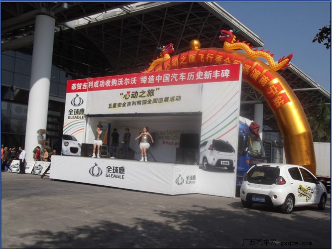 看完以上展場(chǎng)表演,相信你絕不能錯(cuò)過(guò)了吉利熊貓給你帶來(lái)的大型飛行秀車(chē)技表演,在4500平方米的大型的試駕體驗(yàn)場(chǎng)地上,大型的吉利熊貓心動(dòng)之旅全國(guó)巡演就在此地為你拉開(kāi)南寧站序幕,由國(guó)內(nèi)知名的“雷奔車(chē)隊(duì)”為你表演多項(xiàng)驚險(xiǎn)刺激的車(chē)技秀,滿足你的視覺(jué)感受!如果你有興趣還可以現(xiàn)場(chǎng)進(jìn)行試乘體驗(yàn),由車(chē)手帶你感受吉利熊貓車(chē)在急速飄移、180度旋轉(zhuǎn)等過(guò)程車(chē)輛的超強(qiáng)穩(wěn)定性及操控性!