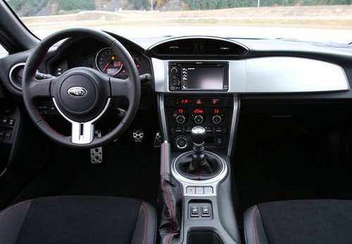 斯巴魯BRZ的內(nèi)飾看起來樸實中帶著動感,中控臺無論造型還是材質都和豪華完全沒關系,而且也沒有什么標新立異的設計,一切都很簡單很平淡。它唯獨不缺的就是運動感,類似STI的儀表、80年代風格的方向盤、撥片式的空調開關等等這些都向我們宣示這是一輛純粹的跑車。