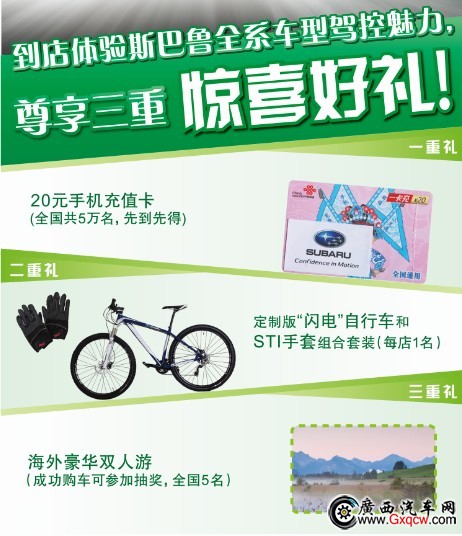即日起至2014年1月31日,親臨百事成斯巴魯參與試駕活動(dòng),均可享如下3重禮: