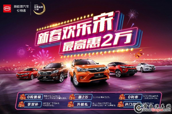 比亞迪汽車“新春歡樂宋 *高惠兩萬”活動大鬧元宵節(jié)開始啦!比亞迪南寧佳之迪邀您到店搶現(xiàn)車,繼續(xù)享購置稅減半政策,SUV綜合優(yōu)惠20000元,參加“幸運轉(zhuǎn)盤”,贏取你的新春專屬大禮;更有吃湯圓,猜燈謎等你來鬧!