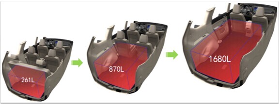 相信購買7座車型的消費者一定會非常關(guān)注其儲物空間的表現(xiàn),可以說寶駿730在這方面做得非常出色,由于車內(nèi)座椅的靈活布局,其后備箱容積*大可擴充至1680L。即便是在第三排座椅使用的情況下,后備箱容積依舊可以達到261L,可同時放置兩個旅行箱。