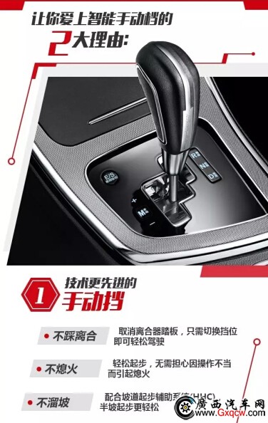 寶駿560智能手動(dòng)檔直接輕推換擋桿即可換擋,告別了傳統(tǒng)手動(dòng)擋的機(jī)械式換擋模式,完全解放駕駛者的“左腳”。在擁堵路段只需松開剎車踏板,便可蠕動(dòng)行駛;同時(shí)在坡起路段,配合坡道起步輔助系統(tǒng)(HHC),當(dāng)車輛處在坡道時(shí),松開剎車,車輛仍保持剎車狀態(tài)2秒左右,駕駛員有足夠的時(shí)間去控制油門踏板起步,避免發(fā)生明顯的溜車情況,半坡起步更為輕松。所以,無(wú)論你是駕駛生疏的新手還是技術(shù)嫻熟的老司機(jī),寶駿560智能手動(dòng)檔都可以讓你輕松駕馭。
