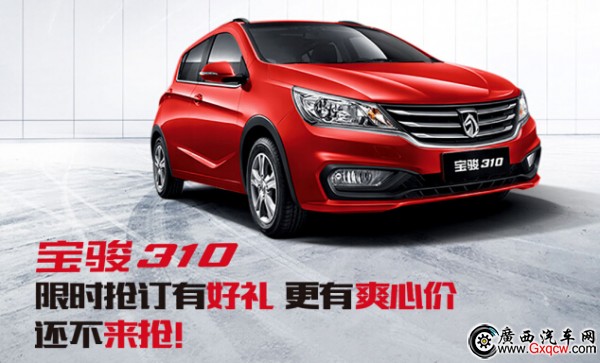 汽貿(mào)園柳州雙誠寶駿店寶駿310實車已經(jīng)到店,歡迎廣大伙伴朋友到店品鑒,F(xiàn)全面鉅惠預(yù)訂中,只要您到店預(yù)交寶駿310訂金,即可享受3100元綜合鉅惠!多種爽心好禮等你來享!