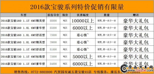 2016款寶駿560/寶駿730七大車型配置