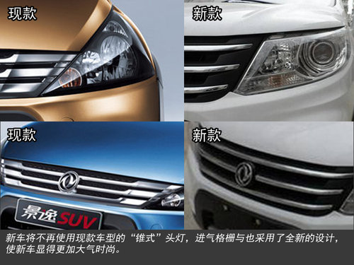 新款景逸SUV的外觀做出了較大的改動,與本田CRV有些相似。新車將不再使用現(xiàn)款車型的“錐式”頭燈,而是采用了“菱形”的設(shè)計,進氣格柵與發(fā)動機罩也經(jīng)過了全新的改進,使新車看起來更加時尚且更充滿運動氣息。