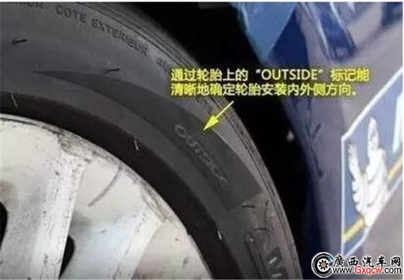 除了四位數(shù)字,“OUTSIDE”的標(biāo)志面就是輪胎的外側(cè),安裝時(shí)一定要注意,如果裝反了將會(huì)嚴(yán)重影響輪胎壽命。