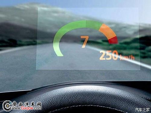 抬頭數(shù)字顯示儀(HeaDS Up Display), 風(fēng)窗玻璃儀表顯示,又叫平視顯示系統(tǒng),它可以把重要的信息,映射在風(fēng)窗玻璃上的全息半鏡上,使駕駛員不必低頭,就能看清重要的信息。這種顯示系統(tǒng),原是軍 用戰(zhàn)斗機(jī)上的顯示系統(tǒng),飛行員不必低頭,就能在風(fēng)窗上看到所需的重要信息。目前,一些高級汽車把它移植到汽車上來。