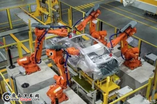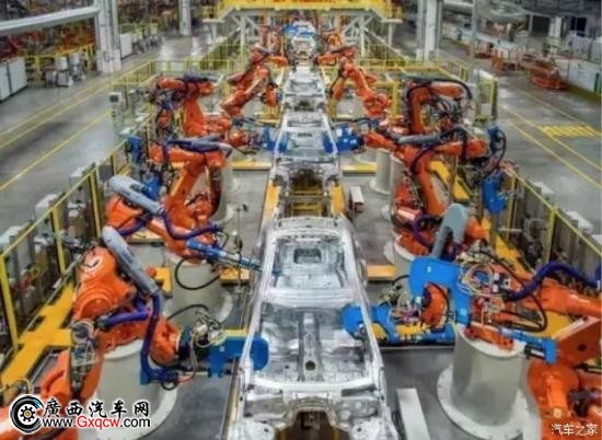 捷豹全鋁車間內(nèi)335臺(tái)機(jī)器人可同時(shí)在生產(chǎn)線上有條不紊地工作,這也使車間的自動(dòng)化率高達(dá)100%。