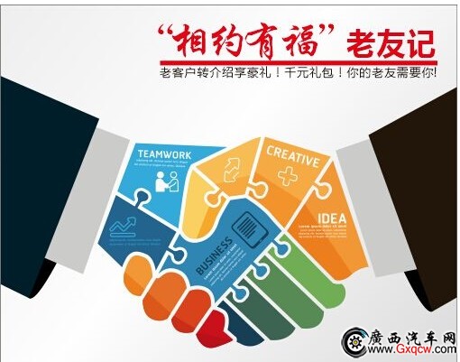 老友四重禮:老友轉(zhuǎn)介紹新客戶(hù)購(gòu)車(chē)成功,獲送購(gòu)車(chē)500元紅包。