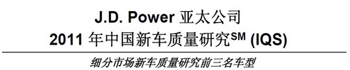 J.D. Power2011中國(guó)新車質(zhì)量榜馬自達(dá)6同級(jí)車中排名**