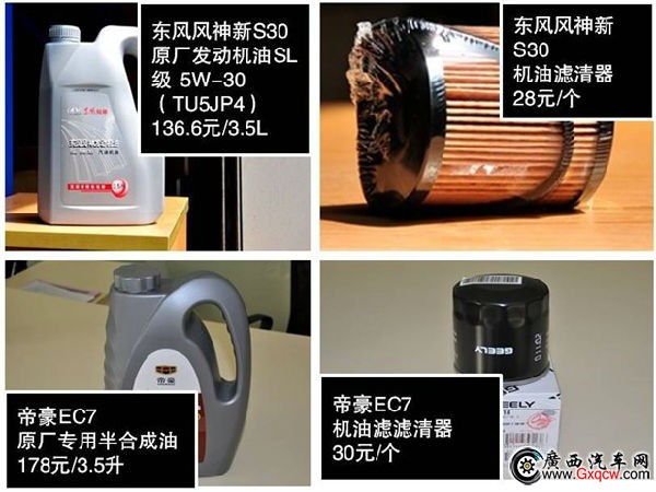 東風風神新S30/帝豪EC7車型保養(yǎng)配件及工時費價格對比