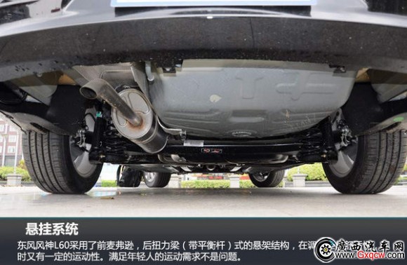 東風風神L60采用了前麥弗遜,后扭力梁(帶平衡桿)式的懸架結構,在調校上偏舒適性,同時又有一定的運動性。當車輛經過小幅坑洼和起伏路面時,懸架能夠隔絕大部分顛簸,車內乘坐舒適性良好。當進行激烈操控時,懸掛同樣能表現出足夠的支撐性,滿足年輕人的運動需求不是問題。