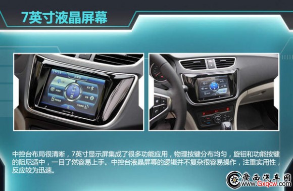 中控臺布局很清晰,7英寸顯示屏集成了很多功能應用,物理按鍵分布均勻,旋鈕和功能按鍵的阻尼適中,一目了然容易上手。中控臺液晶屏幕的邏輯并不復雜很容易操作,注重實用性,反應迅速。